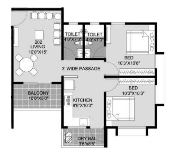 | 2 BHK | Super Built Up - sq.ft